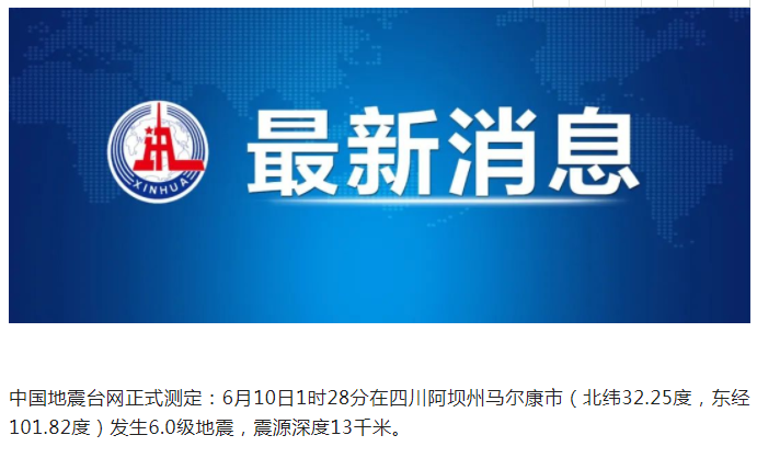 四川馬爾康附近發(fā)生多次地震,最高6.0級